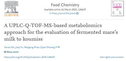 近日,我校食品科学与工程学院双全教授、王俊国教授分别在国际知名学术期刊《Food chemistry》(中科院分区1区,TOP期刊,IF=5.399)在线发表了题为“A UPLC-Q-TOF-MS-based metabolomics approach for the evaluation of fermented mare’s milk to koumiss”(基于UPLC-Q-TOF-MS代谢组学评估马奶发酵至酸马奶的过程)和“Effects of Buffer Salts on the Freeze-Drying Survival Rate of Lactobacillus plantarum LIP-1 Based on Transcriptome and Proteome Analyses”(基于转录组学和蛋白质组学研究缓冲盐对植物乳杆菌LIP-1冷冻干燥存活率的影响)两篇学术论文。