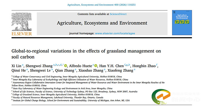 近日,我校生态水文与遥感大数据团队博士在农林科学与生态环境领域国际著名期刊《Agriculture, Ecosystems & Environment》(中科院一区Top)发表题为“Global-to-regional variations in the effects of grassland management on soil carbon”的研究论文。我校水利与土木建筑工程学院博士研究生林汐为第一作者,张圣微教授为通讯作者,内蒙古农业大学为第一完成单位。