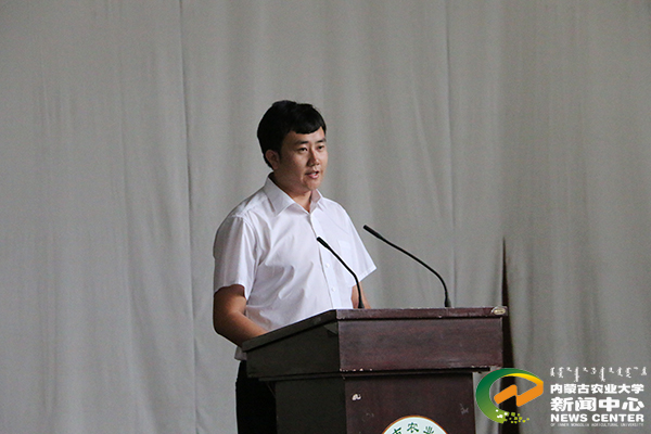 在校学生代表、机电工程学院2016级农业生物环境与能源工程专业博士研究生仇义发言,他以自己的学习、生活感触告诉新生们:要明确自己的研究目标,要融入到一支有战斗力的团队中,要守住身体这个革命本钱。他祝愿同学们在学术的殿堂里,尽显天马行空,任我驰骋的洒脱,追求穷且益坚,不坠青云之志的执着。