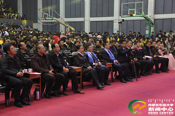 12月28日晚,学校在西区体育馆举办大学生年度人物(群体)颁奖暨新年音乐会,校长王万义、党委副书记侯晨曦、副校长王春光、纪委书记哈斯巴根、副校长塔娜出席并为获得表彰的学生(群体)代表颁奖。各职能部门、学院负责人,师生代表1700余人相聚一堂,共同见证和庆祝属于内农大学子的荣耀时刻。