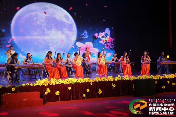 晚会现场座无虚席,气氛热烈。开场舞《故乡赞》,在欢快喜庆的节奏中拉开了晚会的序幕。一曲民乐合奏《花好月圆》空灵悦耳,空气中似有花香四溢,让人不禁有静候蝶来的遐想。一袭红衣奋力一跃,舞动的青春在《祝福母校》中为学校六十五岁生日献上祝福。朗诵《不忘初心继续前进——内蒙古农业大学六十五年颂》,以“仰望星空,脚踏实地”诠释了学校六十五年的艰苦奋斗历程,深情赞颂了学校开拓创新的峥嵘岁月和奋发向上的精神风貌。身着华丽蒙古服饰的学子们,用错落有致、跌宕起伏的无伴奏合唱的《八骏赞》,让观众感受苍茫草原上的骏马飞驰。歌伴舞《遥远的妈妈》,讲述了在九折河湾旁的少年远在他乡,思念母亲的故事。一曲越剧《天上掉下个林妹妹》、一段京剧《梨花颂》,彰显了传统文化的无限魅力。青春洋溢的歌曲联唱,悦耳动听的管弦乐合奏,激情澎湃的大合唱,动人的舞姿,悦耳的音乐,古色古香与现代动感的交叉表演,都赢得了观众阵阵掌声。晚会期间,还播放了各学院、各级团学生组织对全体师生的新年祝福。