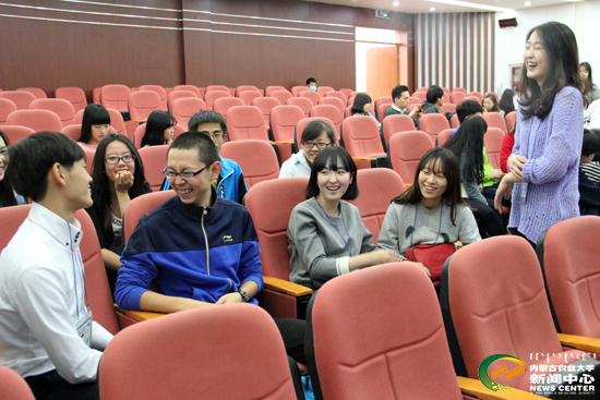 侯晨曦在致辞中真诚欢迎代表团的到访,并用“早,大,多,美” 四个字介绍了学校情况,使代表团对我校“内蒙古自治区建校最早、 校区占地面积大、学生人数和重点学科多、环境优美和学生心灵美”等方面留下了深刻印象。活动现场恰逢我校大一新生军训,同学们列队与韩国青年站在一起,看到此场景时,侯晨曦说,从站队可以看出中韩青年已融为一体,希望中韩的青年们能够敞开胸怀、真诚相待、充分交流、广泛了解,在活动交流中结下深厚而长久的友谊,为中韩青年间的友谊、中韩两国间的友谊架起桥梁。