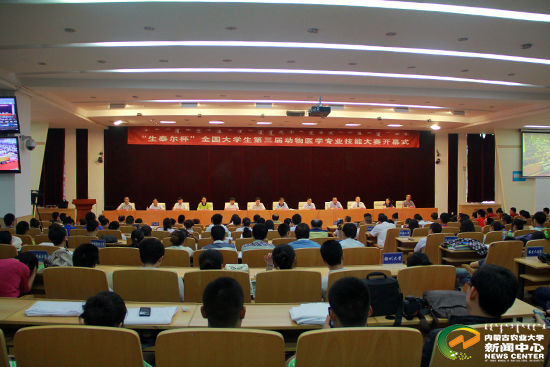 15日上午,大赛在我校西区博学楼报告厅举行开幕式。中国兽医协会会长、中国农业部原首席兽医官贾幼陵,教育部动物医学类专业教育指导委员会主任委员、中国农业大学教授汪明,内蒙古农牧业厅副厅长许燕辉,内蒙古教育厅高教处副处长安利民,北京生泰尔生物科技集团总裁江厚生,内蒙古动物疾控中心主任赵心力,以及我校副校长王春光出席。