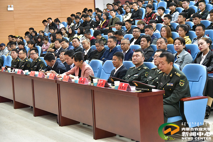 4月21日,由自治区人民政府征兵办公室、自治区教育厅主办,呼和浩特市人民政府征兵办公室、我校承办的2019年自治区征兵宣传教育进高校暨呼和浩特市大学生征兵启动仪式在我校新区多功能报告厅举行。自治区征兵工作领导小组副组长、内蒙古军区副司令员张英奎,自治区党委高校工委委员、教育厅副厅长张亚民,自治区征兵办主任、内蒙古军区动员局局长许中林,呼和浩特市副市长王继平,我校校长高聚林、校党委副书记黄龙海等出席启动仪式,呼和浩特警备区司令员陈建广主持启动仪式。