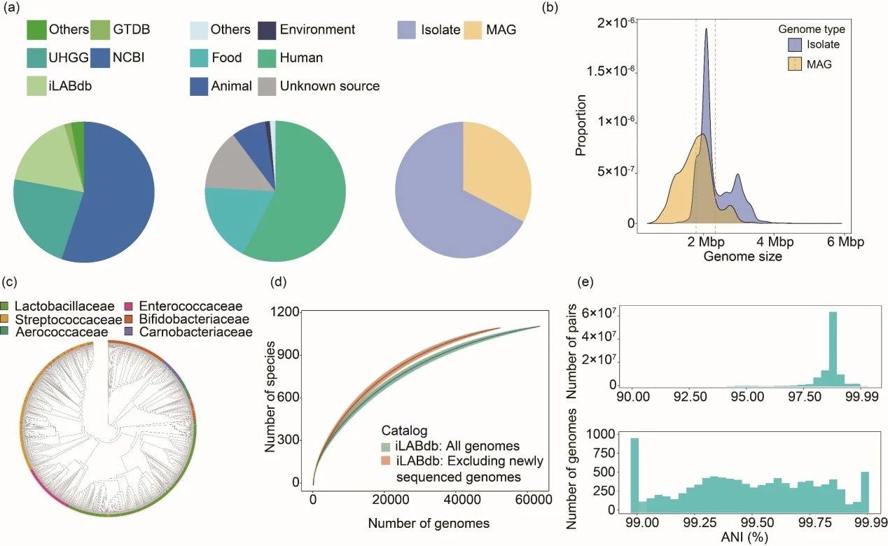 该数据库整合了超过62,000个乳酸菌基因组及相关元数据,包括超过11,000个新测序的乳酸菌基因组,涵盖了多种地理和宿主背景,不仅提供了从菌株到全基因组的全面信息,如分类学划分、地理和宿主来源及生物合成潜能等,还收录了益生乳酸菌临床干预的研究文献,使研究人员能更准确地识别菌株的遗传背景,直观地探索乳酸菌基因组中的关键功能区域,高效地分析乳酸菌的功能特性和潜在应用价值。