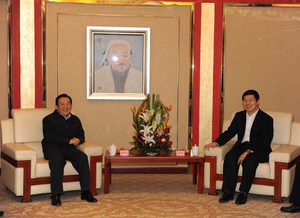 签字仪式前,巴特尔主席在北京内蒙古大厦亲切会见了贾治邦局长等领导。