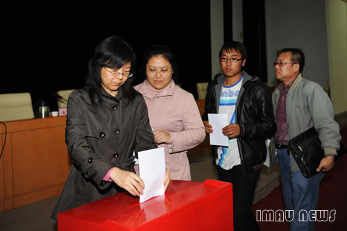大会总监票人、校党政办公室主任乔彪宣布选举结果 |