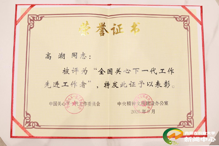 “这份荣誉不仅是个人的,更是学校关工委全体同仁共同努力的结果,承载着对青年成长的深切责任。”高潮说,会以此次表彰为契机,深入落实大会精神,持续发挥农业院校优势,深化我校关心下一代工作创新,让“五老”精神在校园落地生根,为培养新时代涉农人才贡献力量。