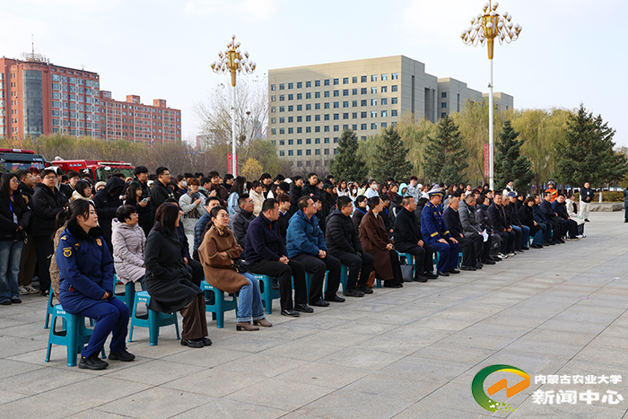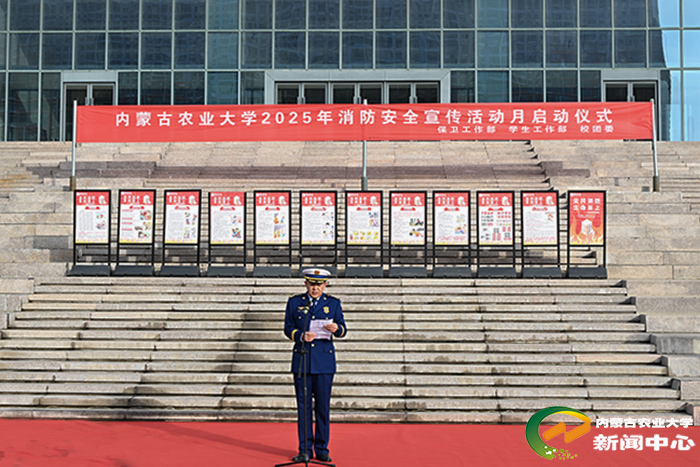 为切实增强师生安全防范意识与应急处置能力,进一步筑牢校园安全防线,11月8日上午,学校在南校区举行2025年冬季消防安全宣传活动月启动仪式。呼和浩特市赛罕区消防救援大队指导员董浩,校党委委员、副校长陆海平出席仪式并讲话。