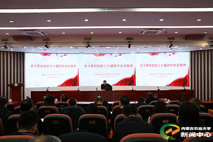 最后,他强调,全校党员领导干部要坚决把思想和行动统一到党中央、自治区的决策部署上来,坚持立德树人根本任务,沿着二十届四中全会指定的方向,紧盯人才引育,科技创新赋能,优化学科布局等工作,以更高站位、更大力度、更实举措,统筹推进教育、科技、人才、体制机制一体改革,着力打造内蒙古农业大学“升级版”,全力争创“双一流”高校,为努力建设好“两个屏障”“两个基地”“一个桥头堡”,精心呵护好“模范自治区”崇高荣誉,奋力谱写中国式现代化内蒙古新篇章,做出新的更大贡献。