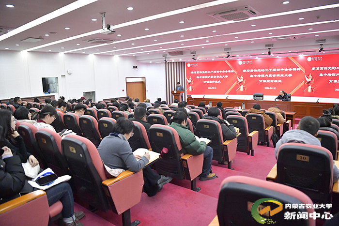 开班式上,陈永胜代表学校对培训班的顺利举办表示祝贺,并向全体思政课教师致以诚挚问候。他说,党的二十届四中全会是在实现“十四五”规划目标任务、谋划“十五五”发展蓝图的关键时期召开的一次重要会议。全会进一步明确了思政课在落实立德树人根本任务中的关键课程定位,对统筹推进教育强国、科技强国、人才强国建设作出战略部署。全体思政课教师和宣讲团成员作为学校思政育人的主力军,肩负着用党的创新理论铸魂育人的光荣使命。面对将全会精神的宏大叙事有效融入课堂教学的时代课题,他提出三点要求:一是要在深学细悟中筑牢政治忠诚,做好马克思主义信仰的“传播者”。 要深刻领悟“两个确立”的决定性意义,全面准确把握全会精神的核心要义与实践要求,以理论清醒确保政治坚定。二是要在守正创新中深耕教学实践,做好学生成长的“引路人”。 要积极探索教学新方法,紧密联系内蒙古“1571”工作部署及发展实践,讲好服务“国之大者”的北疆故事、内农大故事和优秀学子故事,推动思政课从“理论传授”向“价值引领”转变。三是要在知行合一中扛起使命担当,做好立德树人的“实践者”。 要坚持理论联系实际,将学习贯彻全会精神与落实习近平总书记对内蒙古的重要指示精神相结合,与破解教学重点难点问题相结合,将学习成果切实转化为打造思政“金课”、提升育人实效的具体行动,引导学生将个人理想融入强国建设、民族复兴的宏伟事业。学校将继续着力配齐、建强思政课教师队伍,加强教师队伍党员发展工作,以高质量党建引领思政课建设。他勉励全体教师以此次培训为新起点,自觉践行“六要”要求,以实干笃行践履育人使命,共同推动学校思政工作再上新台阶。