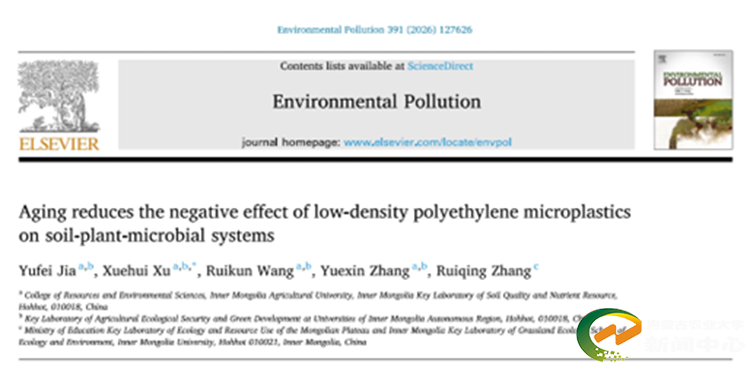 《Journal of Hazardous Materials》论文的第一作者是2025级博士生王茂和已毕业的硕士生王瑞坤;《Environmental Pollution》论文的第一作者是已毕业的硕士生贾宇飞,两篇论文的通讯作者均为许学慧副教授,第一完成单位均为内蒙古农业大学。研究工作得到内蒙古自然科学基金(2022MS03026)、内蒙古自治区重点研发和科技成果转化项目(2025YFHH0174)、内蒙古农业大学基本科研业务费(BR22–13–04; BR22–10–20)等项目资助。
