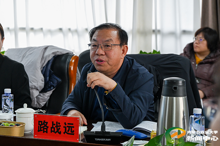 2月24日下午,学校在乳品学院三楼会议室召开食品科学与工程学院(乳业学院)“十五五”规划论证会。会议特邀中国工程院院士、国务院食品科学与工程学科评议组召集人朱蓓薇线上参会,中国工程院院士、内蒙古农牧业科学院院长路战远,赤峰学院院长季祥,内蒙古民族大学副校长红梅,以及我校水利与土木建筑工程学院教授刘廷玺、食品科学与工程学院教授张和平组成的专家组到会指导。校党委书记陈永胜,党委副书记、校长刘永斌,副校长塔娜,党委委员、副校长齐景伟、董同力嘎出席论证会。