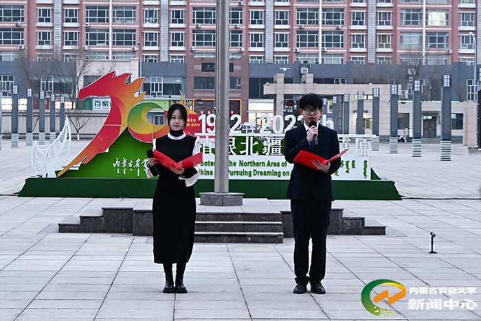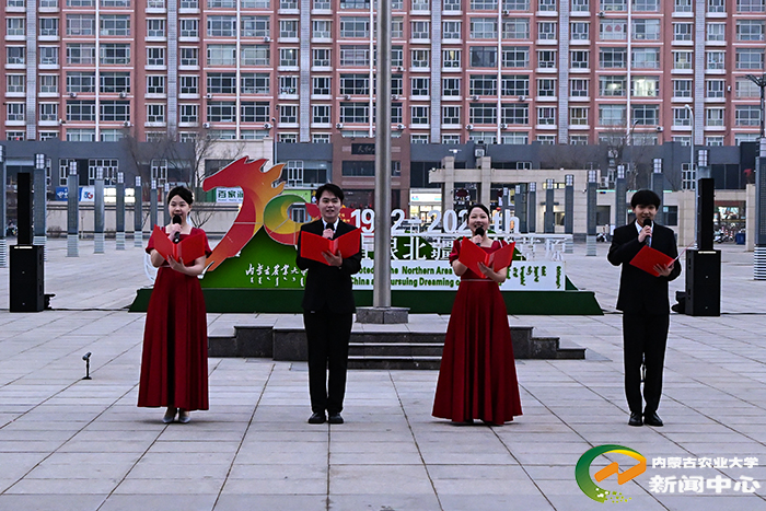 仪式上,来自沙漠治理学院刘松昊、周欣然、石楠、韩永安四位同学在国旗下深情献上诗朗诵《春启新程 逐梦兴农》。他们以饱满的热情和铿锵誓言,深刻诠释了新时代学子 “知农、爱农、强农、兴农” 的初心使命,表达了将青春汗水挥洒在乡村振兴广阔田野的坚定决心,立志为加快推进农业农村现代化、全面建设社会主义现代化国家贡献青春力量。