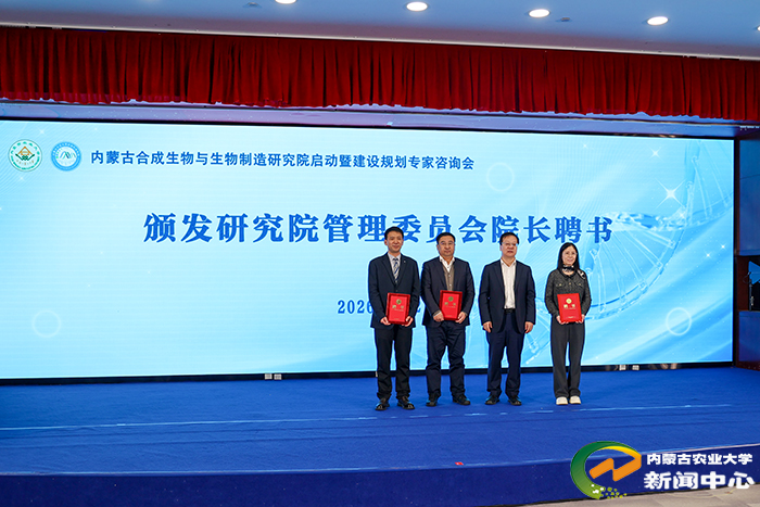 会上,谯仕彦教授作了题为“合成生物学在农业领域的研发与应用”的专题报告,为研究院的发展指明了方向。随后,大会举行了内蒙古合成生物与生物制造研究院启动暨揭牌仪式,并向研究院学术委员会主任及委员颁发聘书。