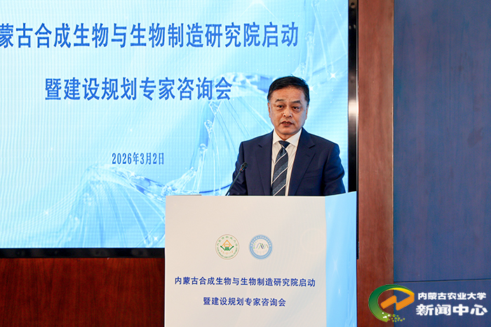 为抢抓全球生物技术变革机遇,落实自治区生物制造产业发展战略,3月2日上午,内蒙古合成生物与生物制造研究院启动暨建设规划专家咨询会在呼和浩特召开。校党委副书记、校长刘永斌出席会议并致辞,副校长塔娜,党委委员、副校长左合君、董同力嘎,副校长张超群出席会议。党委委员、副校长齐景伟主持会议。