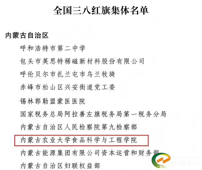 喜讯!我校食品科学与工程学院荣获“全国三八红旗集体”称号