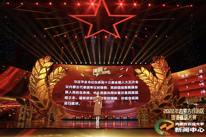 8月21日晚,“理响新征程”2022年内蒙古自治区理论宣讲大赛决赛在呼和浩特举行。我校草原与资源环境学院辅导员吴琼代表自治区教育工委参加比赛,并获得一等奖。